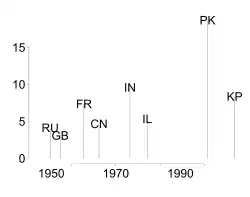 | 2006 | 9 | First test of a nuclear weapon by North Korea |