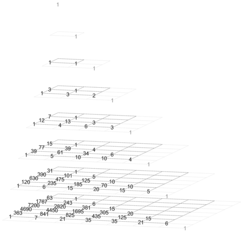 | 7 | 1 · 1 −1 | 7 · 1 7 | 21 · 2 −42 | 35 · 6 210 | 35 · 26 −910 | 21 · 158 3318 | 7 · 1330 −9310 | 1 · 15414 15414 | 8686 |