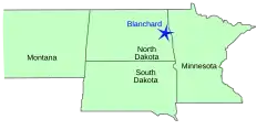 KVLY tower from a distance of about one mile (1.6 km) -