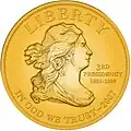 When a President served without a First Spouse, as Thomas Jefferson did, a gold coin will be issued bearing an obverse image emblematic of Liberty as depicted on a circulating coin of that era, and bearing a reverse image emblematic of themes of that President.