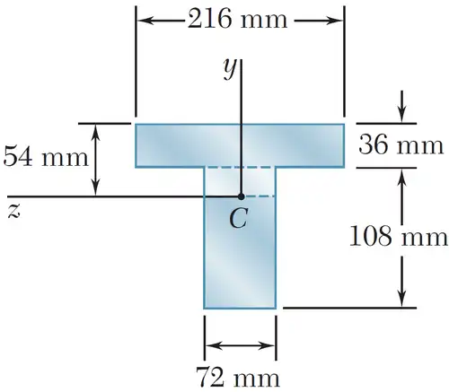 In order to find the Neutral Axis, we must find the centroid of the T-shape cross-section