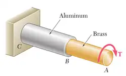 Where T = torque, c = the radius of the cross section, J = centroidal polar moment of inertia ( for a solid shaft)