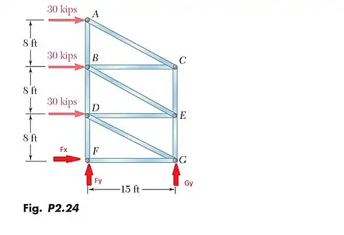 For the steel truss (E = 29 x 10^6 psi) and loading shown, determine