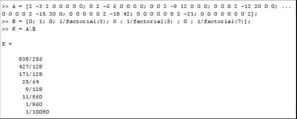 Plugging these values into the ODE and equating them to the excitation, and then solving them by using a upper triangular matrix as before (just as in the n=3 example) in Matlab: