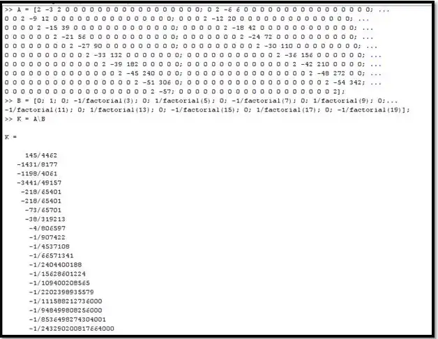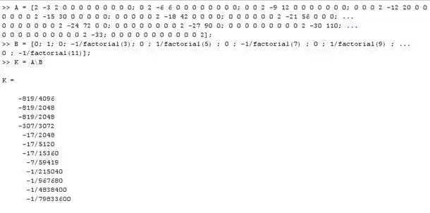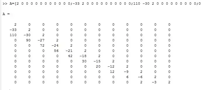 Plugging these values into the ODE and equating them to the excitation, and then solving them by using an upper triangular matrix as before (just as in the n=3 example) in Matlab: