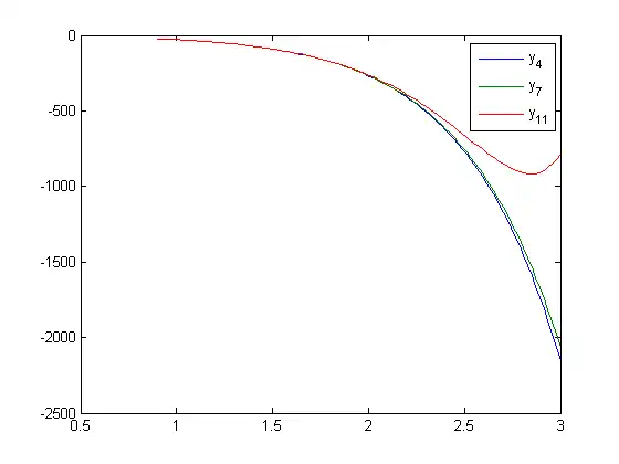 Using a modified version of the Matlab code used in 4.4.1, shown here below, we can solve our coefficients for each y equation (at the specified n values):