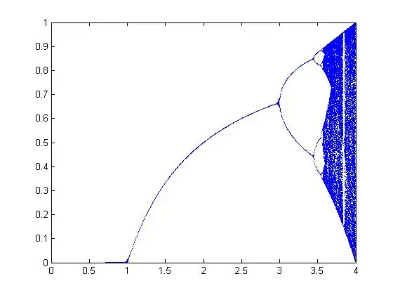 The Bifurcation Diagram shows the period doubling process of the logistic map. As the constant r increases the period is doubled to 2 periods and then stability is lost which then leads to a doubling of period to 4 and so on.