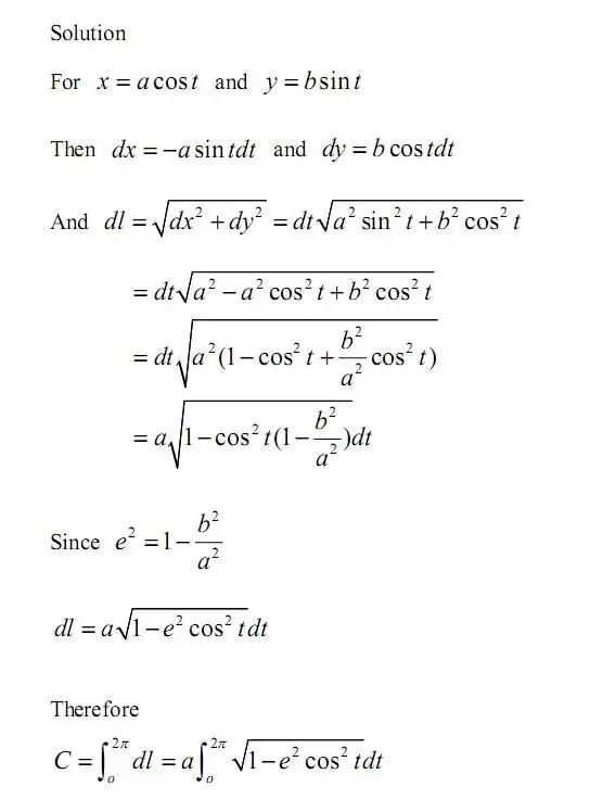 Given the parameterization for an ellipse as follows for the x and y coordinates, Eliminate 't' as a parameter.