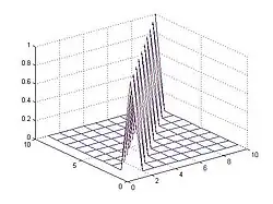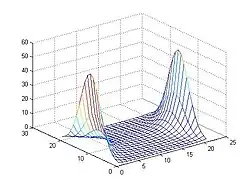 >> z = exp(x.^2 - y.^2); mesh(z)