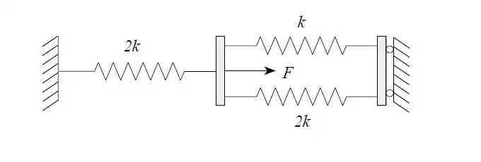 Find the displacements of the nodes as well as the forces in the springs(tension/compression). Also determine the reaction forces at the walls.