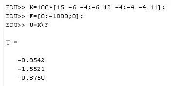 EDU>> [a,r]=solveq(K,f,bc)