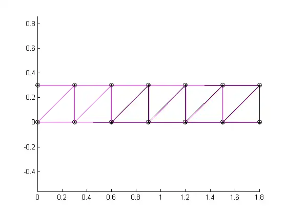 Lastly we determine the stiffness matrix by the coefficients in front of and . Which is: