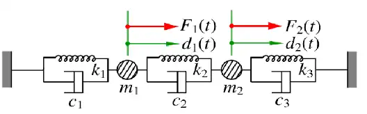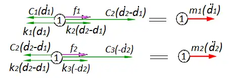 Spring-damper-body arrangement as shown. Two separate forces applied to masses.