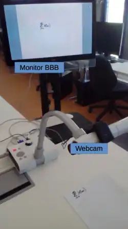 - Webcam is used for transmission of handwritten notes from student to teacher via OpenSource BigBlueButton Video Conferencing System.