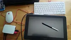 - Raspberry Pi with attached graphics tablet for transmission of notes from teacher to student.