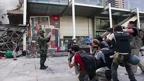 The video journalism production process mythologises and constructs itself inside an elite culture. Expensively funded professionals, that by nature of the slick promotion of their skill and equipment, helicopters and the like, are supposed to penetrate further in bringing us the truth. Journalism and filmmaking are dressed to sell truth at a higher price and so attract higher advertising rates for the publicity that the journalism stories are packaged to support. Alternatives, such as what can be found online, can subvert this culture.