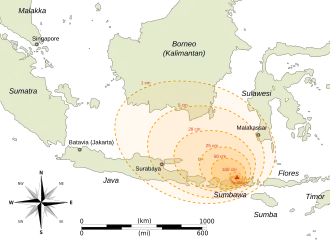 Of the island of Sumbawa’s 12,000 inhabitants, only 26 survived. In addition continuous, frequent earthquakes, pyroclastic flows and tsunamis associated with the event initiated fatalities with an estimate of about 92,000 deaths. The 92,000 deaths occurred in just a few days. The ash polluted water supply and the atmosphere full of ash and volcanic gases. Rapidly, famines and disease extended across the province and the exact number of deaths will never be known.