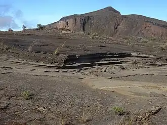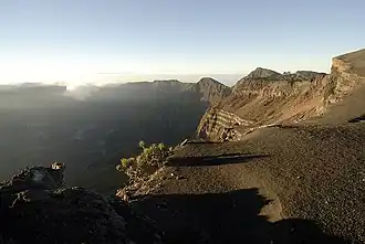 {{free media}}The image on the right exhibits strata in the crater rim of Mount Tambora as evidence of previous eruptions.