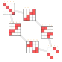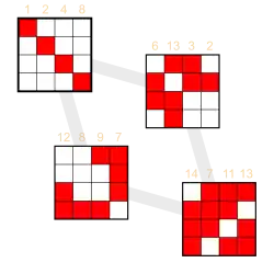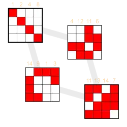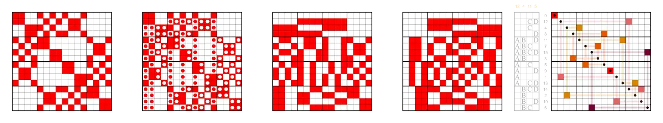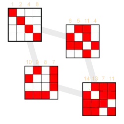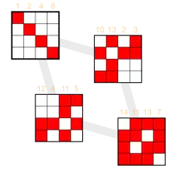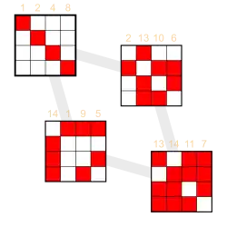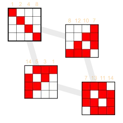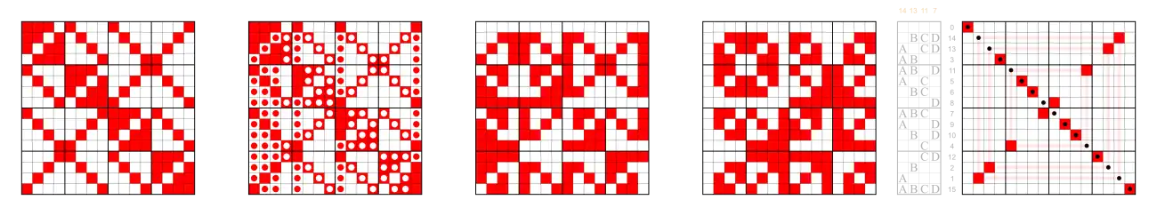 Below are four examples how a Walsh permutation follows from a bent function. This is the meaning of the matrices: