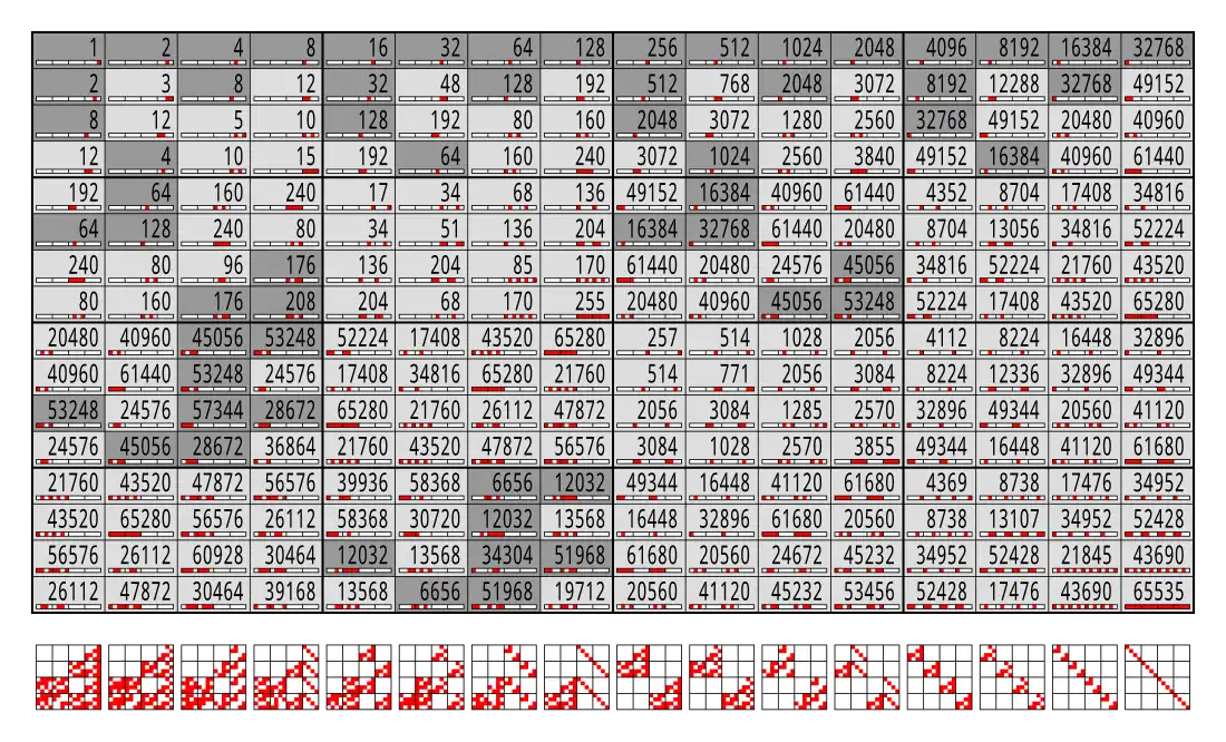 ![]() The dual matrix shows binary Walsh matrices permuted by wp(1,2,8,12) etc. | |||||||||||||||||||||||||||||||||||||||||||||||||||||||||||||||||||||||||||||||||||||||||||||||||||||||||||||||||||||||||||||||||||||||||||||||||||||||||||||||||||||||||||||||||||||||||||||||||||||||||||||||||||||||||||||||||||||||||||||||||||||||||||||||||||||||||||||||||||||||||||||||||||||||||||||||||||||||||||||||||||||||||||||||||||||||||||||||||||||||||||||||||||||||||||||||||||||||||||||||||||||||||||||||||||||||||||||||||||||||||||