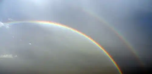 One can also often see a primary and a secondary rainbow with a dark Alexander's band in between the two. See the image below for an example. Notice that the red colors are on the outside of the primary rainbow but on the inside of the secondary rainbow.