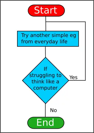 Some people are much better at thinking visually - with pictures and lines. Flowcharts provide a way for us to do exactly that: visualise our algorithms! You can read more about Flowcharts on Wikipedia.