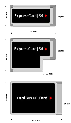 A PC Card (originally PCMCIA Card) is a type of expansion card designed for laptop computers. They are about the size of a credit card, and give the laptop the same capabilities as a PC in a compressed size. There are three types of PC Cards, which are distinguished by their physical thickness. Type 1 cards are the thinnest, while Type 3 cards are the thickest. PC Cards add peripheral capabilities to laptops, such as additional memory, modems and network connectors, and other functions which were not built into the Laptop. As technology has improved, PC cards are being phased out, and are usually only found on older laptops.