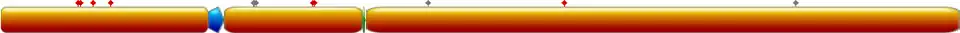 There were seven GlcNAc O-glycosylation sites predicted within the protein sequence found at amino acids 116, 120, 139, 165, 468, 470, and 844.[7] There were also several phosphorylation sites found interspersed throughout the sequence. One propeptide cleavage site was predicted at amino acid 38.[7] There were three predicted sumoylation sites found at amino acids 599, 890, and 1176.