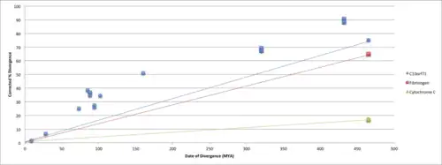 C10orf71's rate of divergence was faster than that of fibrinogen or Cytochrome C.[38]