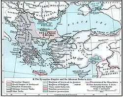 - ↑ Donald M., Nicol (1993), The Last Centuries of Byzantium, 1261–1453, London: Rupert Hart-Davis Ltd, p. 144, ISBN 0-246-10559-3