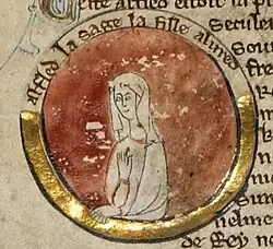 To the West Saxon version of the Anglo-Saxon Chronicle, Æthelflæd was merely King Edward's sister, whereas for the Mercian Register she was Lady of the Mercians.[72] Irish and Welsh annals described her as a queen and the Annals of Ulster, which ignore the deaths of Alfred and Edward, described her as famosissima regina Saxonum (renowned Saxon queen).[73][74] She was also praised by Anglo-Norman historians such as John of Worcester and William of Malmesbury, who described her as "a powerful accession to [Edward's] party, the delight of his subjects, the dread of his enemies, a woman of enlarged soul". He claimed that she declined to have sex after the birth of her only child because it was "unbecoming of the daughter of a king to give way to a delight which, after a time, produced such painful consequences". In the twelfth century, Henry of Huntingdon (who believed that Æthelred was her father and Ælfwynn her sister) paid her his own tribute: