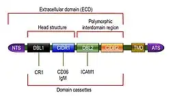 Plasmodium falciparum erythrocyte membrane protein 1 (PfEMP1) is a family of proteins present on the membrane surface of red blood cells (RBCs or erythrocytes) that are infected by the malarial parasite Plasmodium falciparum. PfEMP1 is synthesized during the parasite's blood stage (erythrocytic schizogony) inside the RBC, during which the clinical symptoms of falciparum malaria are manifested. Acting as both an antigen and adhesion protein, it is thought to play a key role in the high level of virulence associated with P. falciparum. It was discovered in 1984 when it was reported that infected RBCs had unusually large-sized cell membrane proteins, and these proteins had antibody-binding (antigenic) properties. An elusive protein, its chemical structure and molecular properties were revealed only after a decade, in 1995. It is now established that there is not one but a large family of PfEMP1 proteins, genetically regulated (encoded) by a group of about 60 genes called var. Each P. falciparum is able to switch on and off specific var genes to produce a functionally different protein, rendering evasion from the host's immune system. RBCs carrying PfEMP1 on their surface stick to endothelial cells, which facilitates further binding with uninfected RBCs (through the processes of sequestration and rosetting), ultimately helping the parasite to both spread to other RBCs as well as bringing about the fatal symptoms of P. falciparum malaria.