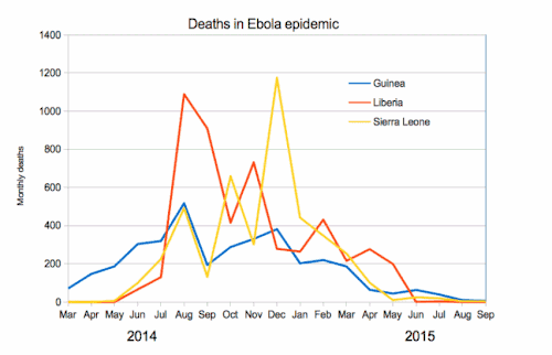 Wikipedia: This work is adapted from the Wikipedia article Western African Ebola virus epidemic (CC BY-SA). Content has also subsequently been used to update that same Wikipedia article Western African Ebola virus epidemic.