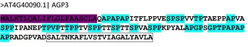 - ↑ PLA: phytocyanin-like AGP. ALGAL-CAM: algal cell adhesion molecule. ISG: inversion-specific glycoprotein. FLA: fasciclin like AGP. ENODL: earlt nodulation like. MF: male fertility. TTS: transmitting tissue specific. MTR: microspore and tapetum regulator. SOS: salt overly sensitive. XYP: xylogen protein. attAGP: attachment AGP.