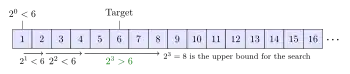Alternatively, the algorithm may take the ceiling of , or the least integer greater than or equal to . This may change the result if the target value appears more than once in the array.