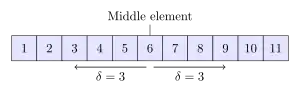 - Set (the position of the middle element) to the ceiling of , which is the least integer greater than or equal to .