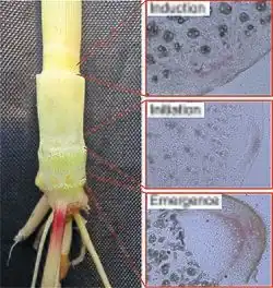 - ↑ Martin, J. N.; Hershey, A. L. (1935). The ontogeny of the maize plant. The early differentiation of stem and root structures and their morphological relationships. Iowa State Coll, J. Sci, 9: 489–503.