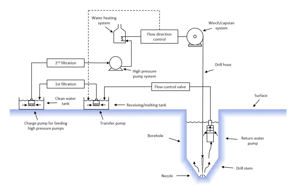 Wikipedia: This work is adapted from the Wikipedia article Ice drilling (CC BY-SA). Content has also subsequently been used to update that same Wikipedia article Ice drilling.