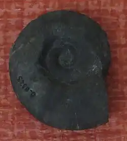 Gupta's practice of fakery was first publicly exposed at the "International Symposium on the Devonian System" held in Calgary, Canada from 17 to 20 August 1987.[44] The week before, Talent came across a paper by Gupta and German palaeontologist Heinrich Karl Erben (Institut für Paläontologie, Bonn) published in Paläontologische Zeitschrift in 1983 reporting a series of Devonian ammonoids from Himachal Pradesh (Figure 4 is an example of such an ammonoid).[45] When Talent presented his own research at the symposium,[46] he added a discussion on the Himalayan fossils, including Gupta's ammonoids and those from Morocco displaying them side by side on the screen;[47] they appeared "exactly the same".[48] Another case of identical fossils presented by Talent was from Gupta's accounts of two conodonts in 1975, allegedly collected from two sites 600 kilometres apart and described in two different papers.[49] One scientist pointed to Gupta, who was sitting in the front row, and said: "Well, how do you explain having exactly the same fossils in two localities 600 kilometres apart?" An infuriated Gupta stormed out of the room and re-entered clenching his fist as he tried to punch Talent, but was prevented by other participants.[48][50] He shouted to the organisers, demanding the list of all participants and Talent's manuscript.[48]