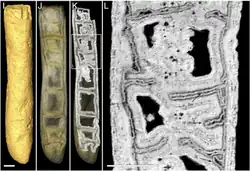 - ↑ Bengtson, Stefan; Sallstedt, Therese; Belivanova, Veneta; Whitehouse, Martin (2017). "Three-dimensional preservation of cellular and subcellular structures suggests 1.6 billion-year-old crown-group red algae". PLOS Biology 15 (3): e2000735. doi:10.1371/journal.pbio.2000735. ISSN 1545-7885. PMID 28291791. PMC 5349422. //www.ncbi.nlm.nih.gov/pmc/articles/PMC5349422/.