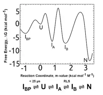 - ↑ 36.0 36.1 Forsyth, William R; Bilsel, Osman; Gu, Zhenyu; Matthews, C Robert (2007). "Topology and sequence in the folding of a TIM barrel protein: global analysis highlights partitioning between transient off-pathway and stable on-pathway folding intermediates in the complex folding mechanism of a (βα) 8 barrel of unknown function from B. subtilis". Journal of Molecular Biology 372 (1): 236-253. doi:10.1016/j.jmb.2007.06.018.