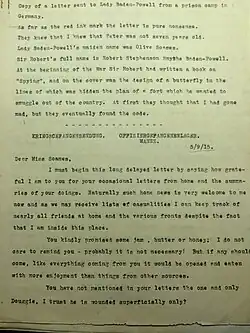 very active in the war effort. Archival materials suggest that Baden-Powell aided Great Britain through espionage[11]. One document even contains a description of Lord Baden-Powell’s attempt to smuggle information into Germany coded in the artwork of a book he published on butterflies[12]. Scholars argue that Baden-Powell’s Boy Scouts, when founded, had strong nationalistic and pro-British tendencies that made them an important organization in WWI Britain[13]. Lord Baden-Powell himself was extremely critical of Communism, and appeared to have many nationalist and fascist beliefs[14]. He admired Benito Mussolini’s fascist regime in Italy, and even described Adolf Hitler’s Mien Kamph as “a wonderful book, with good ideas on education, health, propaganda, organization etc. – and ideals which Hitler does not practice himself.[15]”