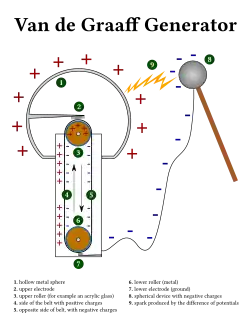 The positive roller creates an electric field that pushes the charge in the "opposite" direction to the circuit. So, what pushes the electrons? Answer: At "2" it is an electric field that causes the electrons to migrate through the air gap. But below point "2", on the moving belt, the electrons are carried against the electric field by the motor that causes the belt to move. Rubber is an insulator, so that the electrons are unable move according to F=qE, but instead are influenced the force that prevents electrons from moving through an insulator.
