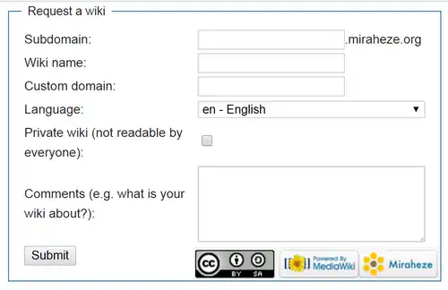 If you choose not to use one of the wikis on wright.miraheze.org, you may instead select a private wiki on Miraheze:Special:RequestWiki. To avoid confusion, use the same name for the Wiki name and the Subdomain name, and select the first five letters of this name to be "wright". Do not select a Custom domain unless you want to find a host outside Miraheze.